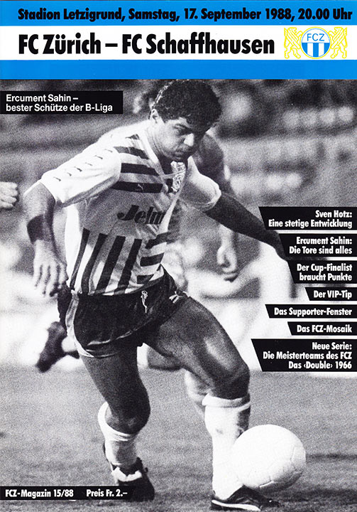 | Spiel | FCZ - Schaffhausen (17.09.1988) | Login |