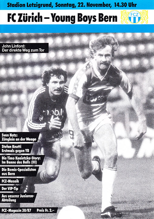 | Spiel | FCZ - Young Boys (22.11.1987) | Login |