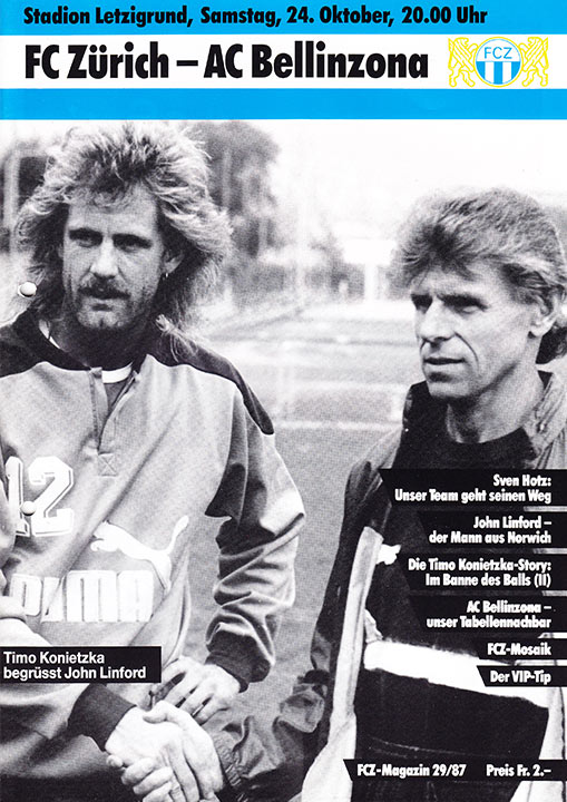 | Spiel | FCZ - Bellinzona (24.10.1987) | Login |