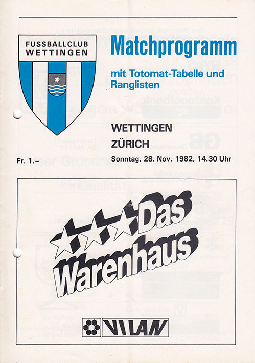| Spiel | Wettingen - FCZ (28.11.1982) | Login |