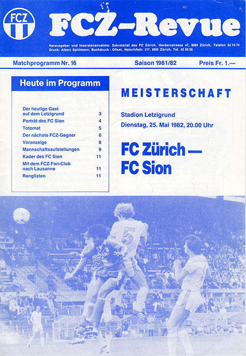 | Spiel | FCZ - Sion (25.05.1982) | Login |