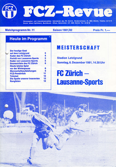 | Spiel | FCZ - Lausanne-Sports (06.12.1981) | Login |