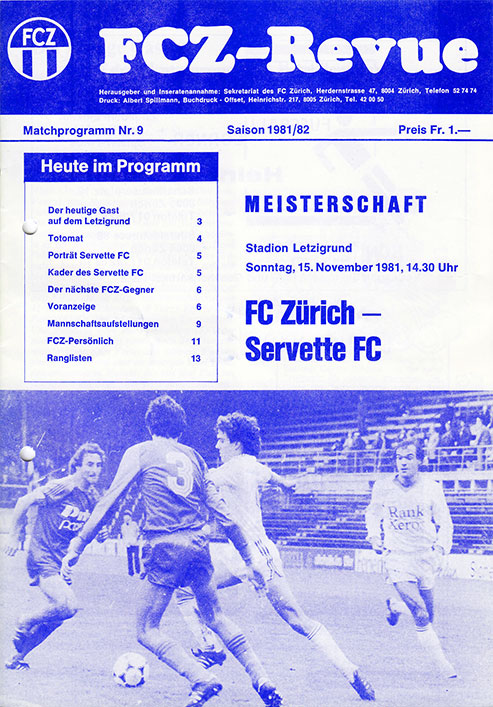 | Spiel | FCZ - Servette FC (15.11.1981) | Login |