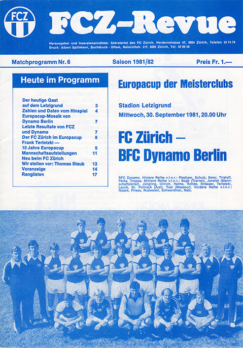 | Spiel | FCZ - BFC Dynamo (30.09.1981) | Login |