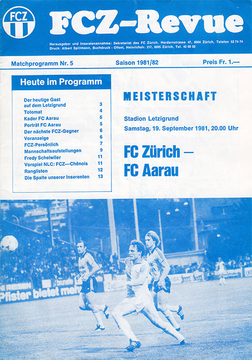 | Spiel | FCZ - Aarau (19.09.1981) | Login |