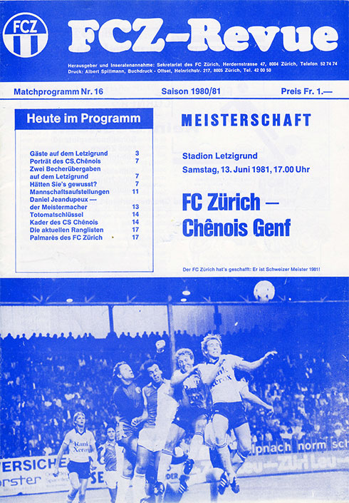| Spiel | FCZ - Chênois (13.06.1981) | Login |