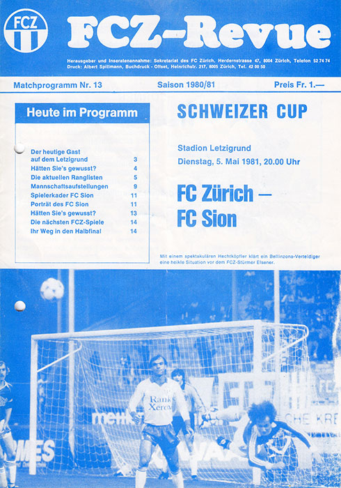 | Spiel | FCZ - Sion (05.05.1981) | Login |
