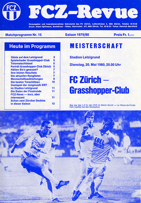 | Spiel | FCZ - Grasshoppers (20.06.1980) | Login |