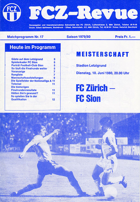| Spiel | FCZ - Sion (10.06.1980) | Login |