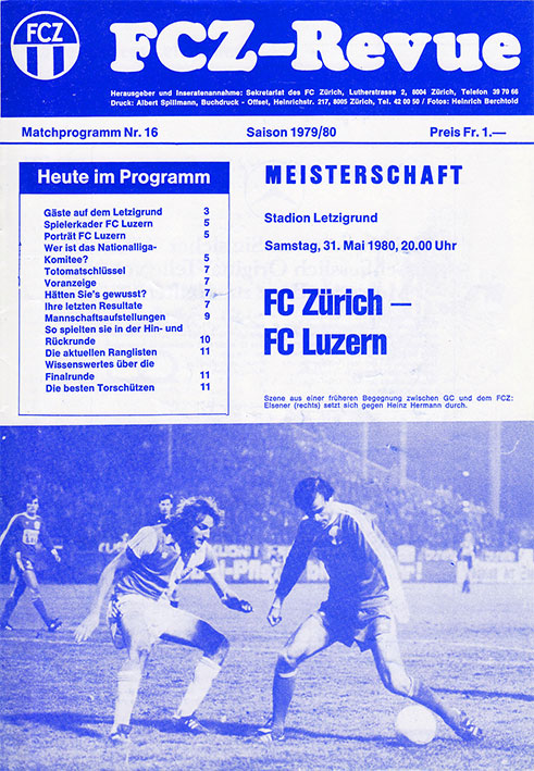 | Spiel | FCZ - Luzern (31.05.1980) | Login |