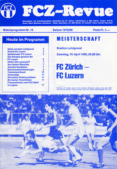 | Spiel | FCZ - Luzern (19.04.1980) | Login |