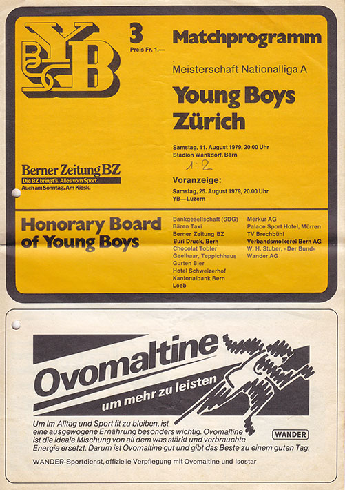 | Spiel | Young Boys - FCZ (11.08.1979) | Login |