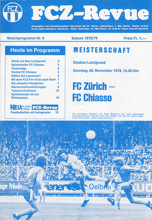 | Spiel | FCZ - Chiasso (26.11.1978) | Login |