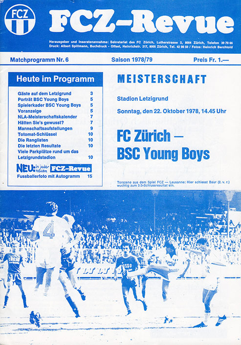 | Spiel | FCZ - Young Boys (22.10.1978) | Login |
