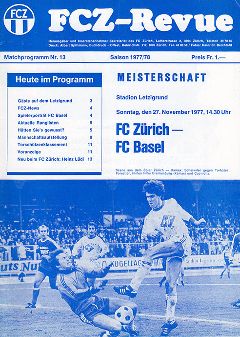 | Spiel | FCZ - Basel (27.11.1977) | Login |