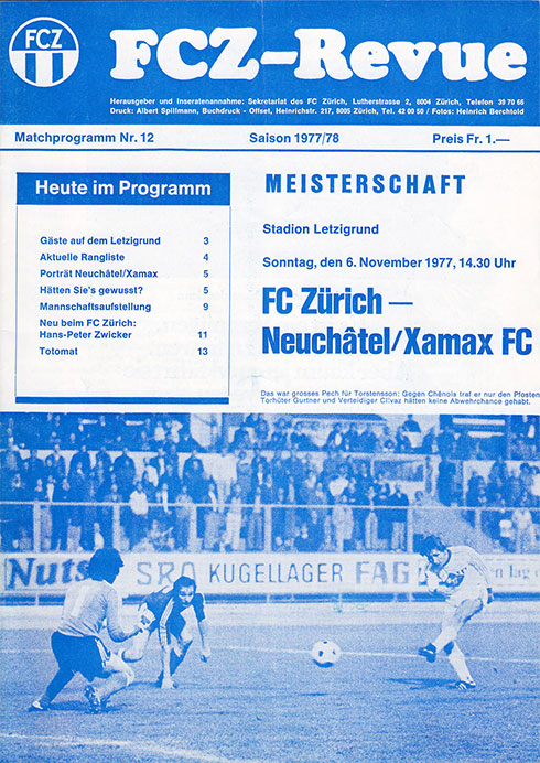 | Spiel | FCZ - Neuchâtel Xamax (06.11.1977) | Login |