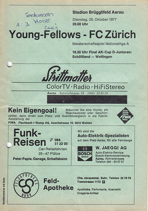 | Spiel | Young Fellows - FCZ (25.10.1977) | Login |