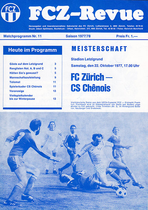| Spiel | FCZ - Chênois (22.10.1977) | Login |