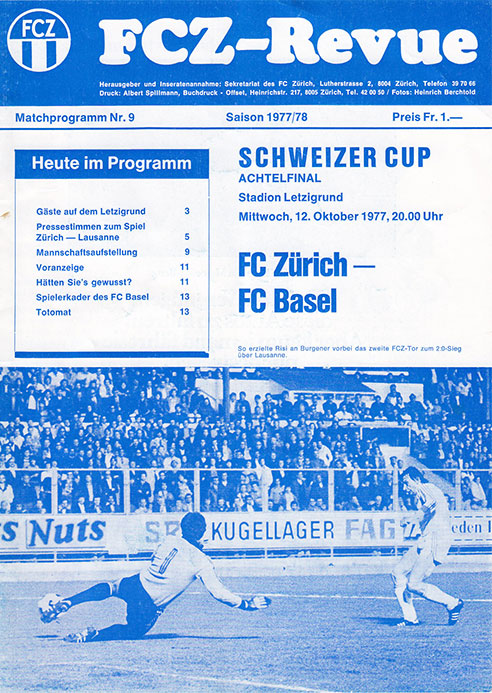 | Spiel | FCZ - Basel (12.10.1977) | Login |