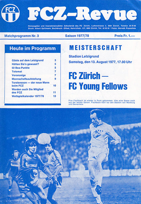 | Spiel | FCZ - Young Fellows (13.08.1977) | Login |