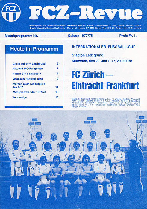 | Spiel | FCZ - Eintracht Frankfurt (20.07.1977) | Login |