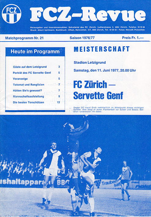 | Spiel | FCZ - Servette FC (11.06.1977) | Login |