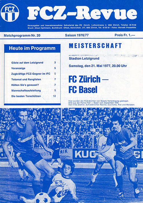 | Spiel | FCZ - Basel (21.05.1977) | Login |