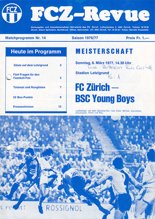 | Spiel | FCZ - Young Boys (06.03.1977) | Login |