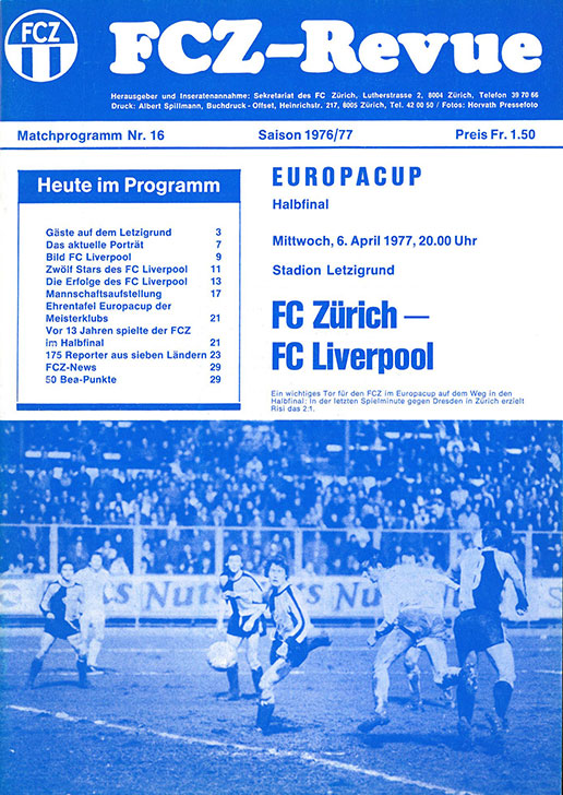 | Spiel | FCZ - Liverpool (06.04.1977) | Login |