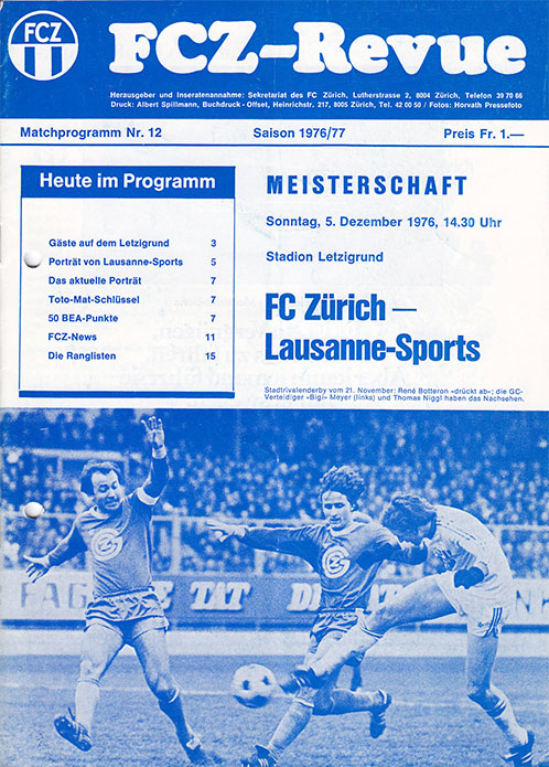 | Spiel | FCZ - Lausanne-Sports (05.12.1976) | Login |
