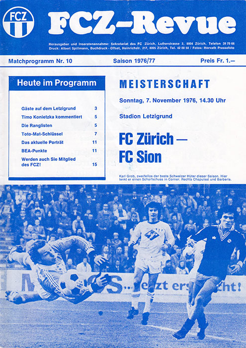 | Spiel | FCZ - Sion (07.11.1976) | Login |
