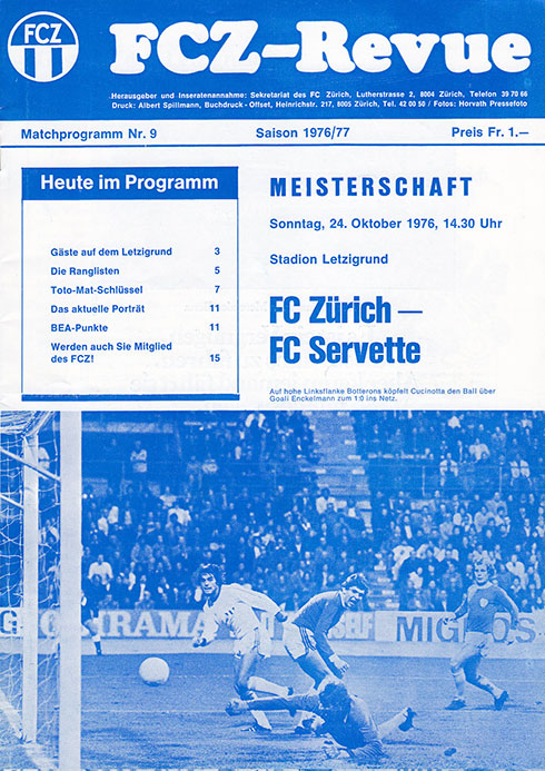 | Spiel | FCZ - Servette FC (24.10.1976) | Login |