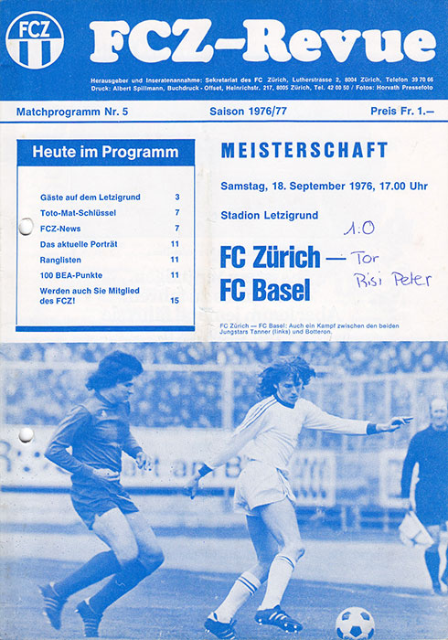| Spiel | FCZ - Basel (18.09.1976) | Login |