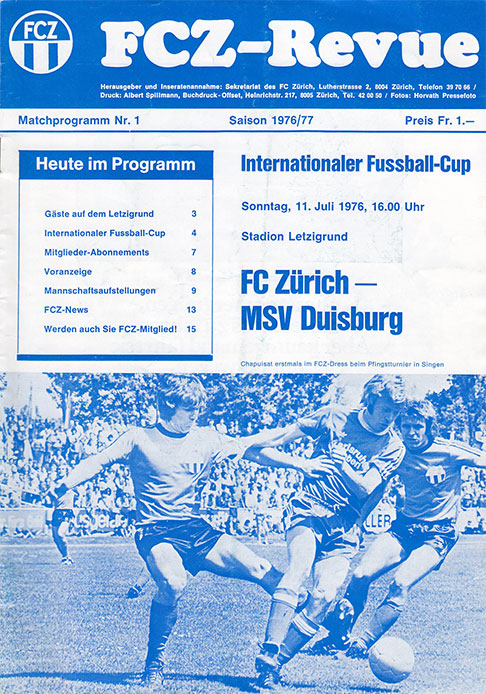 | Spiel | FCZ - Duisburg (11.07.1976) | Login |