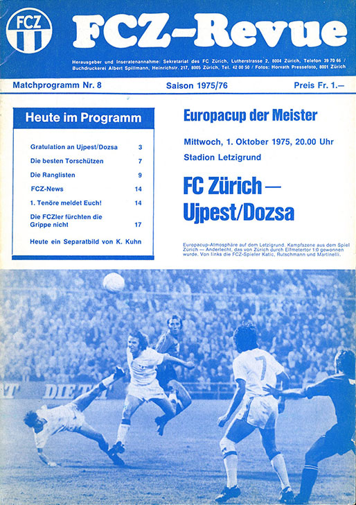 | Spiel | FCZ - Újpest FC (01.10.1975) | Login |