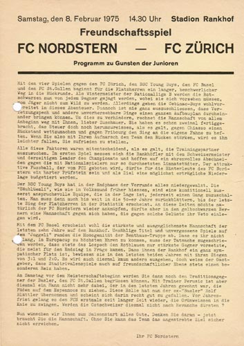 | Spiel | Nordstern - FCZ (08.02.1975) | Login |