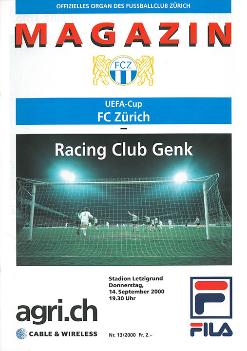 | Spiel | FCZ - Genk (14.09.2000) | Login |