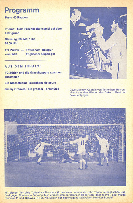 | Spiel | FCZ - Tottenham Hotspur (30.05.1967) | Login |