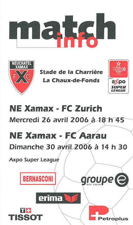 | Spiel | Neuchâtel Xamax - FCZ (26.04.2006) | Login |