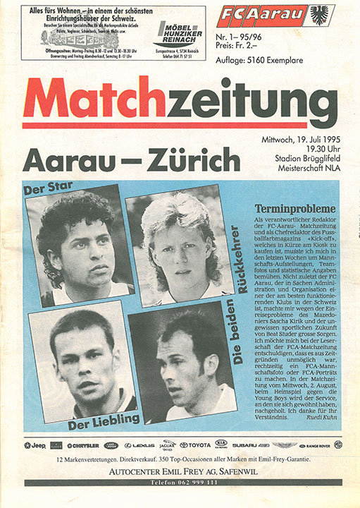 | Spiel | Aarau - FCZ (19.07.1995) | Login |