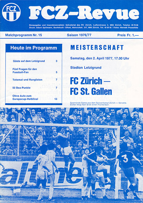| Spiel | FCZ - St. Gallen (02.04.1977) | Login |